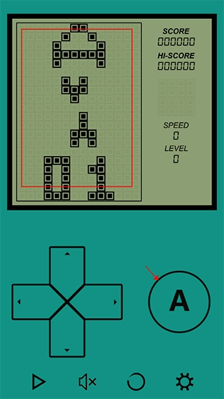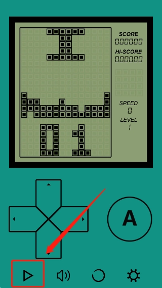 2、如下圖所示的就是“俄羅斯方塊”的界面,點(diǎn)擊下方的三角箭頭即可進(jìn)入