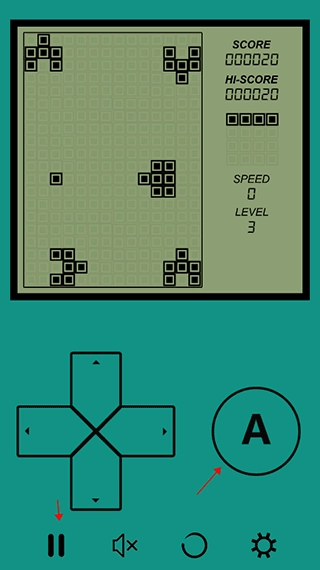 3、在游戲內(nèi)可以單獨(dú)使用方向鍵進(jìn)行操作,上方向鍵能夠切換方塊的方向,下方向鍵可以控制方塊快速下落,左右方向鍵用來控制方塊左右移動(dòng);另外,旁邊的“A”鍵和上方向鍵的功能是相同的,都能控制方塊切換方向。
