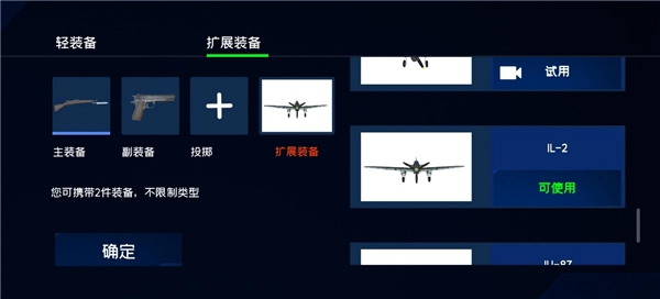 1、于裝備搭配處點(diǎn)擊擴(kuò)展裝備,若想獲取其中的飛機(jī),玩家需觀看廣告。