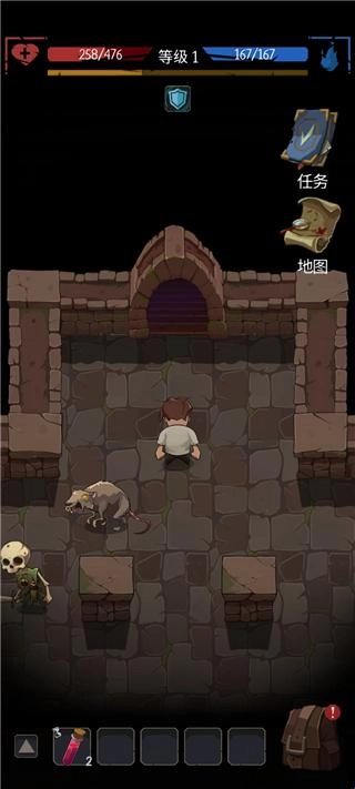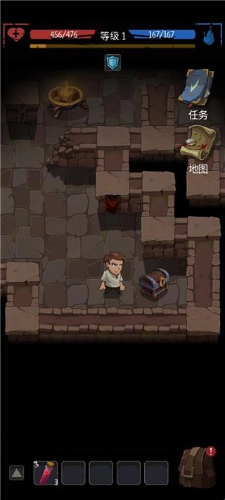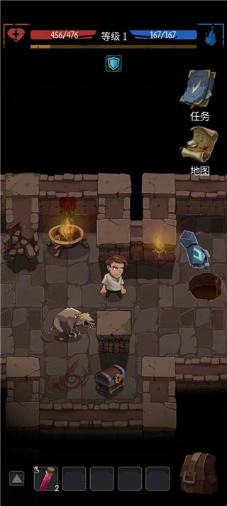 1、暗黑風(fēng)格的冒險(xiǎn)闖關(guān),地下城藏有寶藏,需按地圖推進(jìn)關(guān)卡。