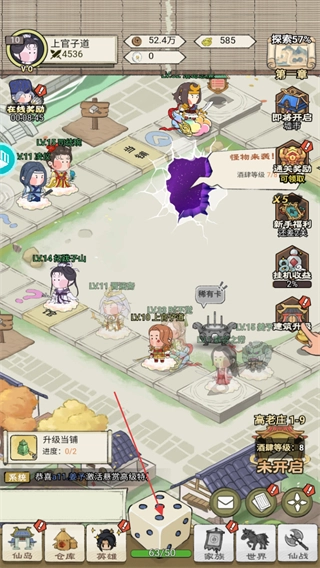 1、打開游戲進(jìn)入游戲系統(tǒng)主頁,點(diǎn)擊下方的骰子來控制角色在地圖上的步數(shù)移動。