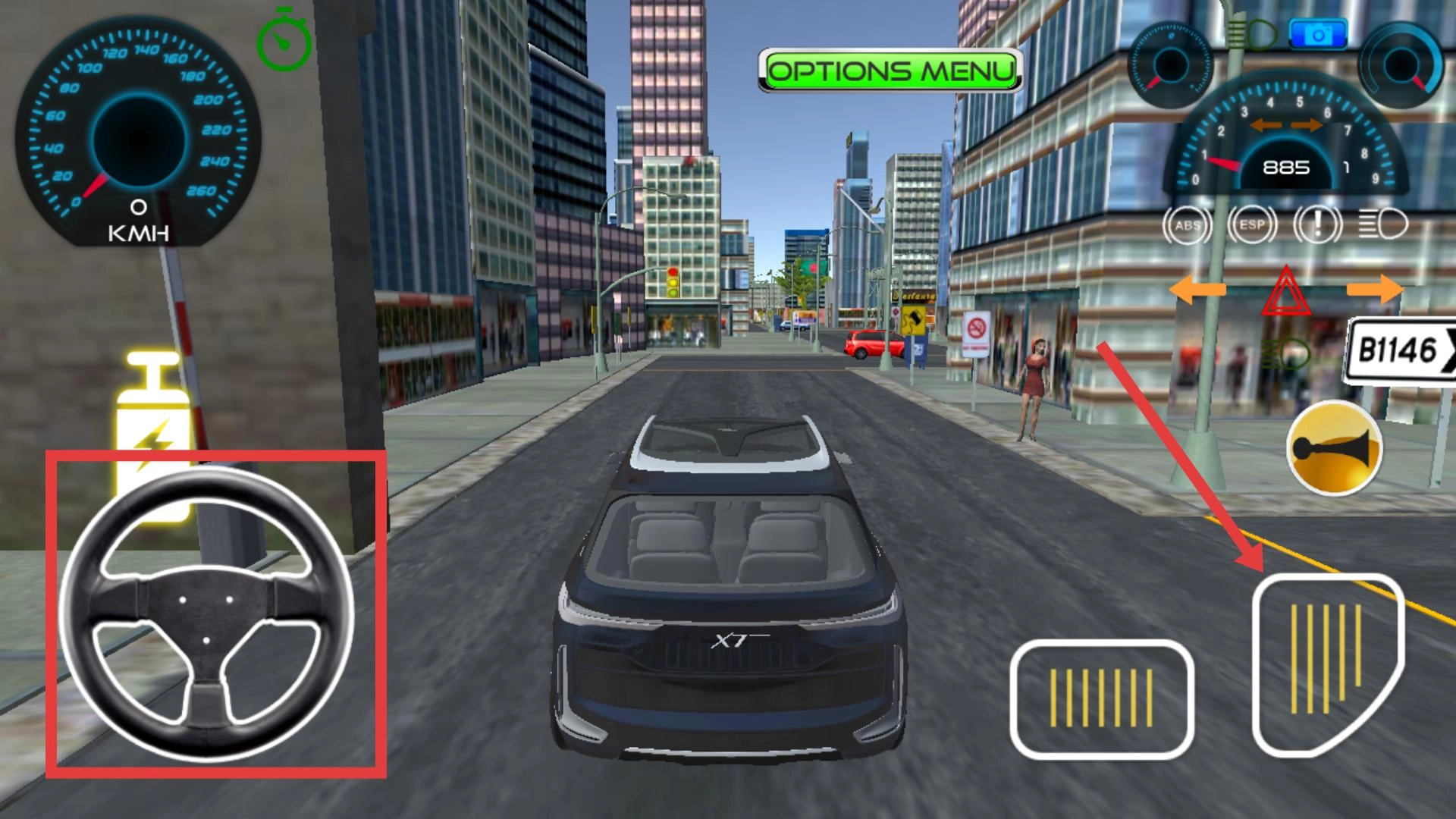 在駕駛界面中,可通過左側(cè)的方向盤操控方向,借助右側(cè)按鍵來控制油門與剎車,同時要熟悉儀表盤所顯示的各類信息,在城市道路上做到安全行駛,并留意遵守交通規(guī)則。