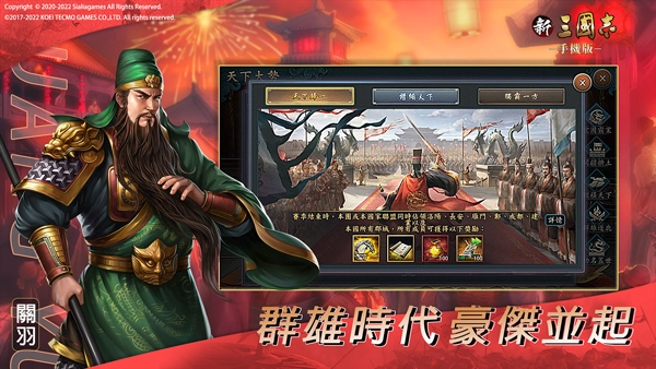 《新三國(guó)志手機(jī)版》是港澳臺(tái)新馬地區(qū)唯一由光榮特庫(kù)摩正版授權(quán),基于《三國(guó)志11》研發(fā)的,是一款讓你體驗(yàn)到軍事謀略的正統(tǒng)SLG。在這里你能體驗(yàn)到不同于其他SLG的“深度戰(zhàn)略性”與“豐富的收集要素”。在這個(gè)亂世,你能到達(dá)最頂點(diǎn)嗎?