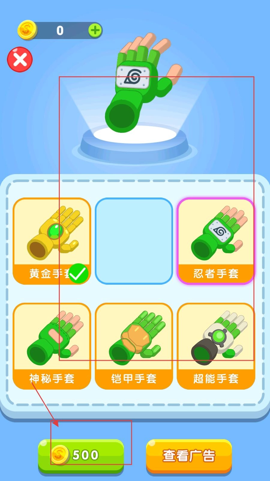 游戲里有黃金手套、忍者手套等多種手套可以挑選,消耗金幣就能解鎖,幫助玩家順利通關(guān)。