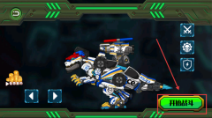 1. 開啟游戲,把機械恐龍的各個部件拖至指定地點,完成拼裝操作。此外,還能通過觀看視頻的方式實現(xiàn)快速拼裝。