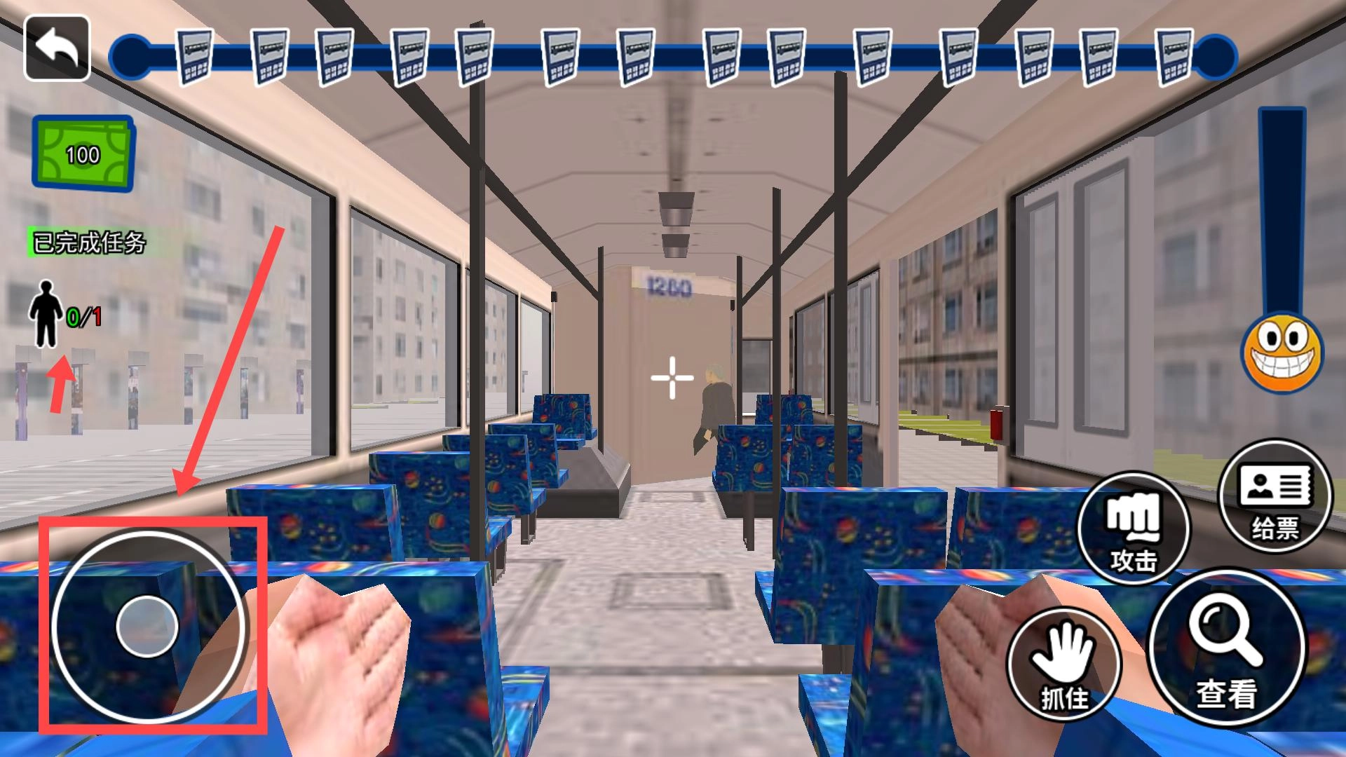 通過(guò)操控左側(cè)搖桿來(lái)控制角色移動(dòng),在公交車(chē)內(nèi)部完成各項(xiàng)任務(wù),要留意乘客的不同需求,并按照游戲提示采取行動(dòng),以此推動(dòng)游戲進(jìn)程向前發(fā)展。