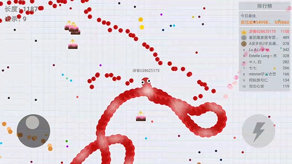 要是特別倒霉,你的蛇被其他蛇圍住了,別氣餒!接著繞圈,盡量朝著對方蛇頭的方向移動,努力繞大圈。對大蛇而言,它的命更金貴!還能和小伙伴聯(lián)手限制大蛇的繞圈路徑,逼它出錯。要是能反殺,就能讓自己的長度大幅增加!