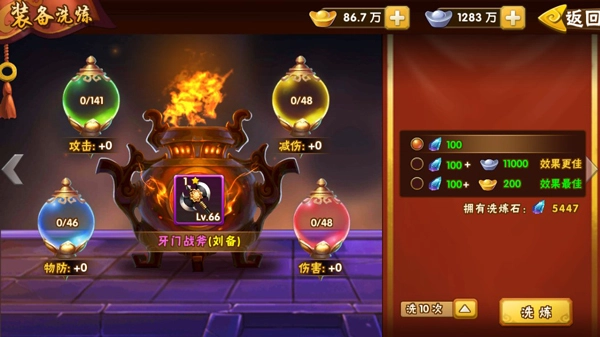 進(jìn)入洗練面板后,能依據(jù)內(nèi)容提示挑選洗練類型,再點(diǎn)擊“洗練”按鈕。