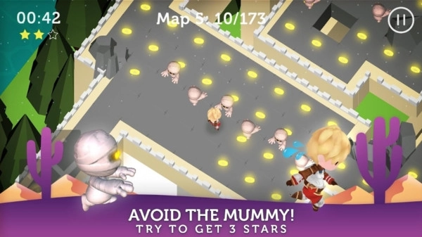 您被困在迷宮里,要想逃出去,唯一的辦法就是在迷宮中收集寶藏。要做到這一點,您得盡快行動,小心別撞上巡邏的木乃伊。