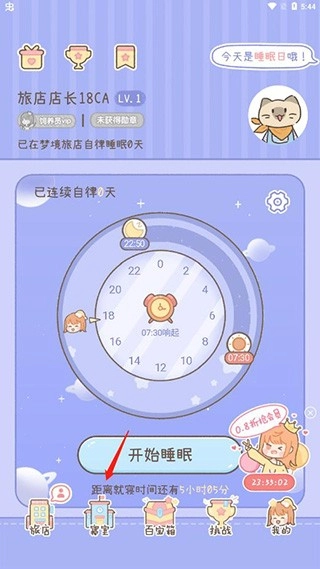 2、完成睡眠打卡即可領取獎勵,用戶還能打理專屬的夢境旅店。