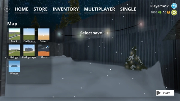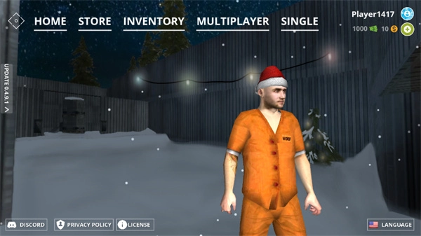 1、進入游戲后,界面上從左到右排列著五個功能選項,依次為主頁(home)、商店(store)、倉庫(inventory)、多人游戲(multiplayer)和單人游戲(single)。