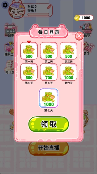 1.上線之后可以領(lǐng)取每日登錄獎勵。