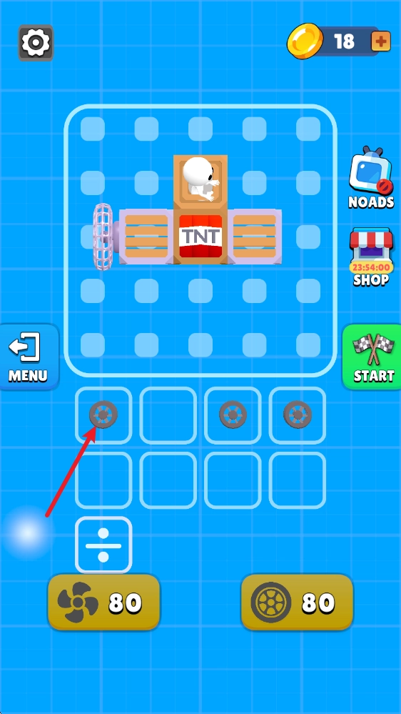 5、汽車組裝完成后,我們就能進(jìn)入場(chǎng)景開始挑戰(zhàn)了,點(diǎn)擊屏幕就能讓風(fēng)扇轉(zhuǎn)動(dòng),為汽車提供前進(jìn)的動(dòng)力。