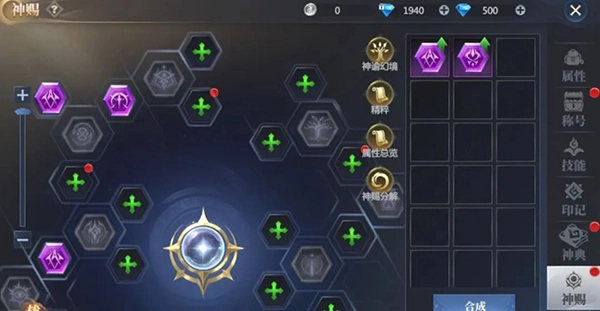 2、神賜裝備:分為外圈神賜與中心神賜兩類,不同類型的神賜需對應裝備在專屬的神賜孔位上。