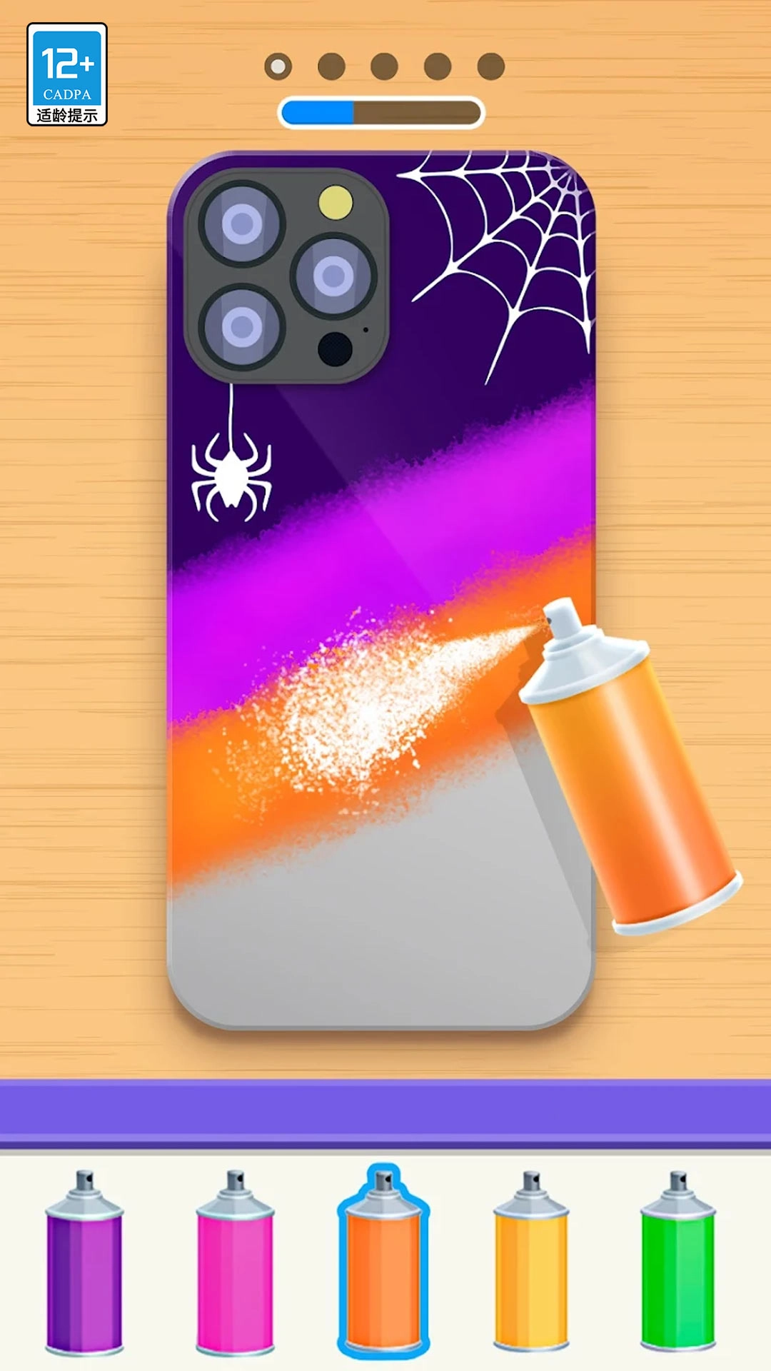 2.使用虛擬的膠水瓶和噴槍工具,通過(guò)手指滑動(dòng)或點(diǎn)按,將膠水均勻涂抹,并噴上自己選擇的顏色和圖案。