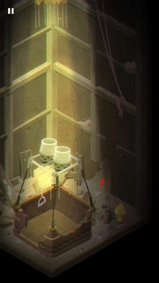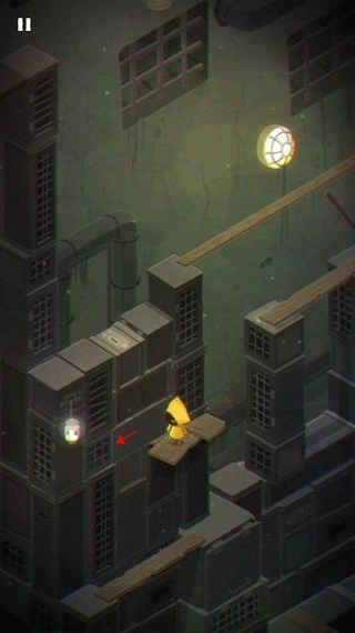 游戲的開端是摩諾用門抵御外界的攻擊,第一關(guān)里,摩諾身處一個類似籃子的空間,得按住上方的拉桿才能讓自己落到地面。