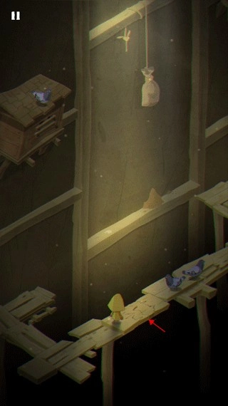 3、第一關(guān)會遇到大量鴿子,經(jīng)過這里時要留意這塊板子,當快要掉下去的時候,快速點擊屏幕讓摩諾移動到安全的位置上。