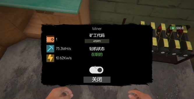 3、點擊已安裝完成的礦機(jī),按下F鍵進(jìn)入控制界面,開啟開關(guān),使其保持工作狀態(tài)。