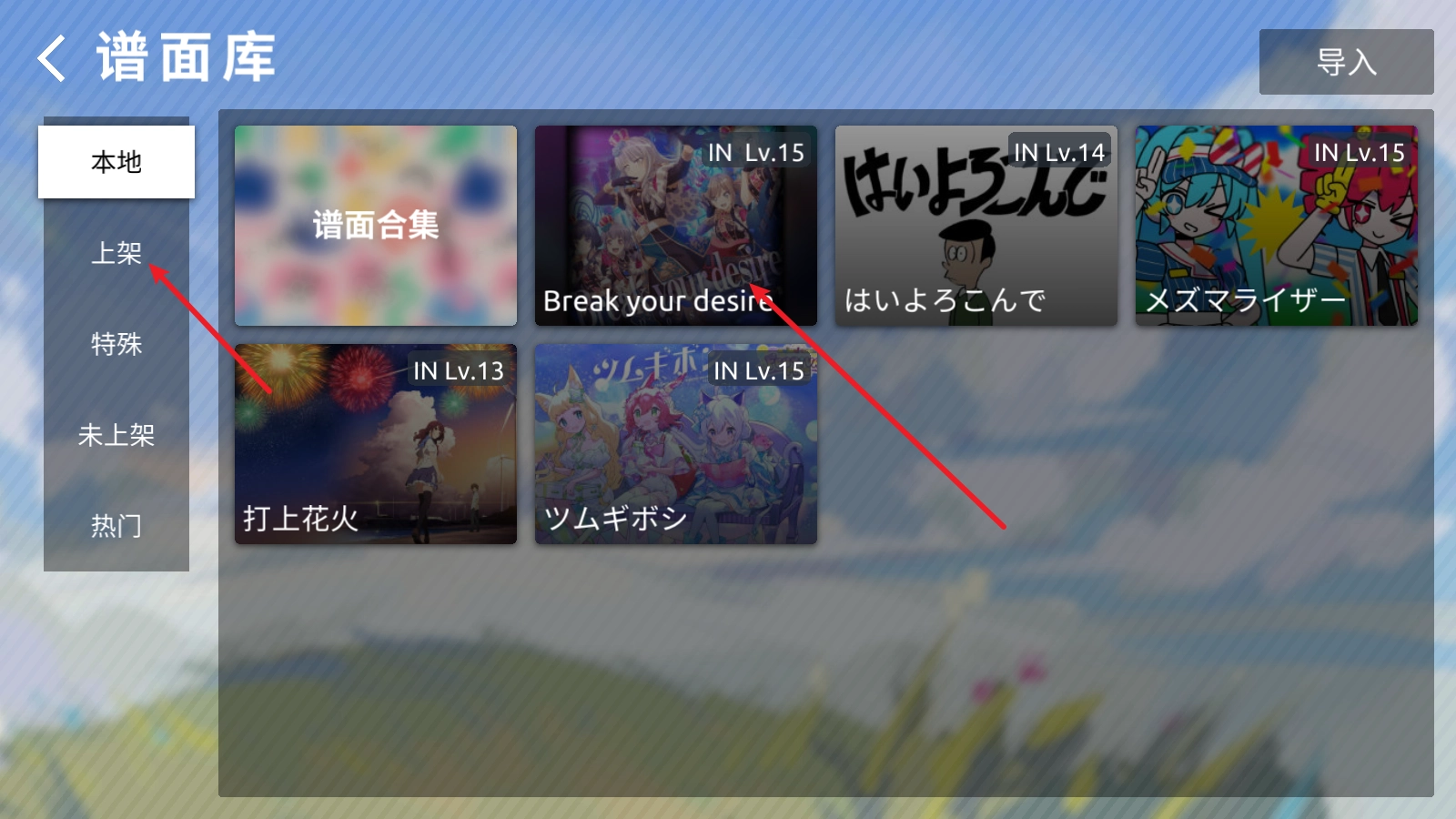 2、接下來我們可以從本地曲庫中挑選一首開始挑戰(zhàn),也可以去已上架的作品里選擇其他歌曲。