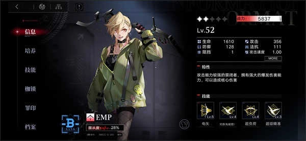 所有類型、階級(jí)的禁閉者都僅有4個(gè)技能,具體分為普攻技能、必殺技能以及2個(gè)大被動(dòng)技能。禁閉者初始階段僅具備普攻和必殺這兩個(gè)技能,而被動(dòng)技能則需要通過升階來解鎖。