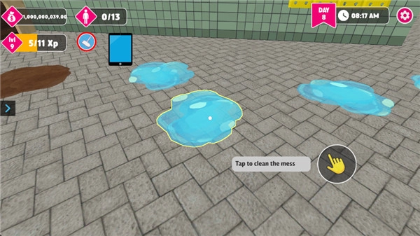 1、進(jìn)入游戲控制角色清理地面上的污漬;