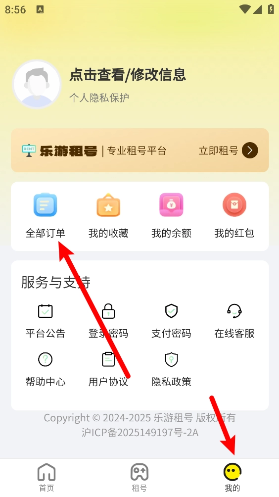 5、最后在我的頁面,就可以查看對應的租號訂單。