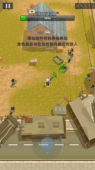 通過滑動搖桿來操控角色的移動方向,角色會自動鎖定射程范圍內(nèi)距離最近的敵人并發(fā)起攻擊。