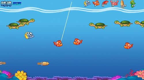 5、釣魚方法很簡單,我們只要點擊屏幕,上方的魚線就會向下延長,當魚線頂端剛好碰到魚,就能將它吊起來了。這個大家多嘗試幾次就可以輕松釣到魚。