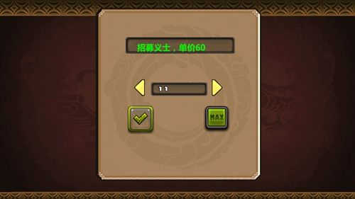 11、招募士兵是需要錢的,大家量力而行,前期招收30個士兵即可,剛好前中后三個陣型每個陣型10個士兵。