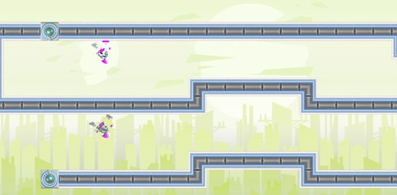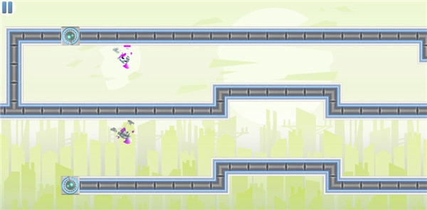 5、完成激光照射后,我們會分裂成兩個分身,游戲難度將大幅增加,此時需要同時操控兩位角色來躲避障礙物。