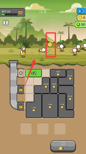 進(jìn)入關(guān)卡后,首先要收集金幣,當(dāng)金幣數(shù)量達(dá)到目標(biāo)要求時,就能解鎖方塊。接下來需要合理規(guī)劃方塊的擺放位置,通過合成來逐步打造出強力武器,以此提升戰(zhàn)士的戰(zhàn)斗能力。