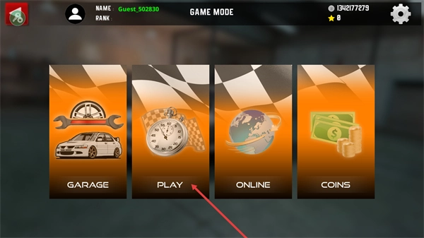在游戲主界面點(diǎn)擊PLAY選項(xiàng),即可進(jìn)入競(jìng)速賽道模式——這是開(kāi)啟游戲的核心入口。進(jìn)入該模式后,系統(tǒng)會(huì)直接加載賽道場(chǎng)景,待完成準(zhǔn)備流程,玩家就能開(kāi)始進(jìn)行駕駛與漂移操作了。
