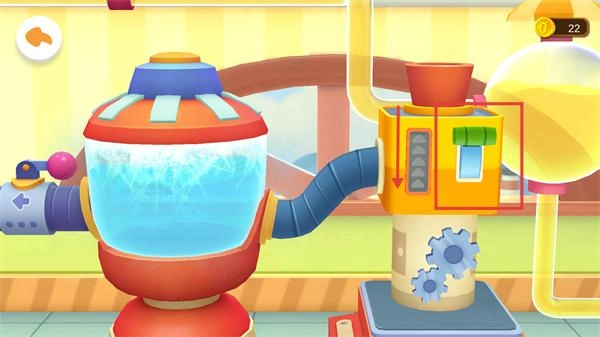 點擊帶有箭頭標識的管道裝置,以此來控制液體的傳輸方向,從而推進果汁后續(xù)的處理流程。