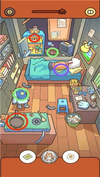 3、點擊地面上那個圓圓的紅色按鈕,等蟑螂經(jīng)過洞口時,再點擊洞口就能獲取薯片。