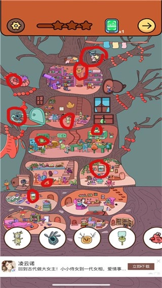 2、點擊下方的樹葉,待烏鴉出現(xiàn)后,點擊烏鴉收起。