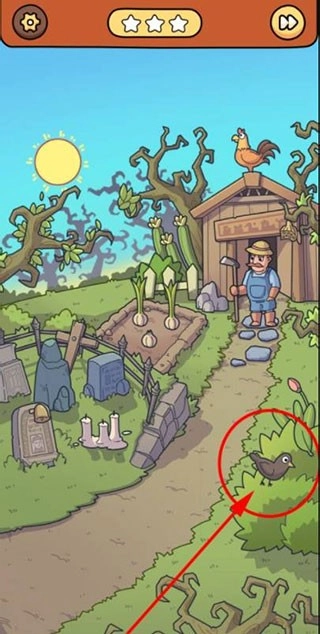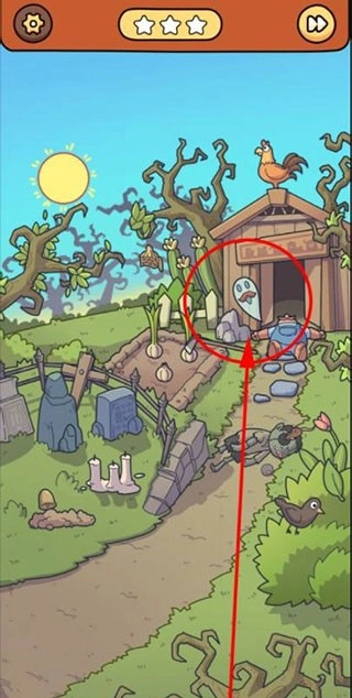 腦洞大偵探最新版本僵尸大作戰(zhàn)攻略1、小屋門口菜園旁立著一塊掛有鈴鐺的墓碑,點擊墓碑上的鈴鐺后會出現(xiàn)閃電符號,點擊該符號即可將其收起。