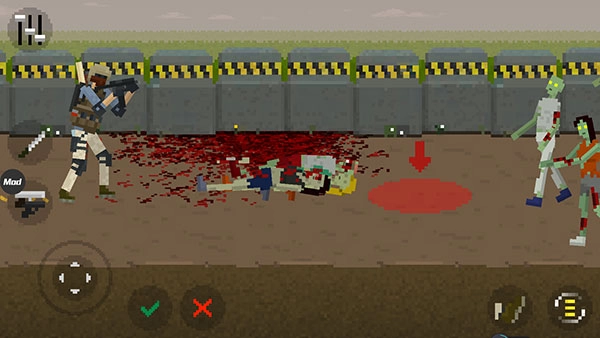 4、點擊屏幕左下方的兩個標志,就能切換近戰(zhàn)武器與射擊武器,點擊屏幕任意位置即可發(fā)起攻擊;