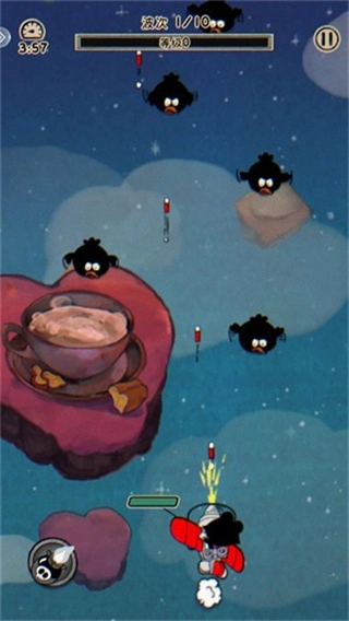 3、然后通過(guò)按住屏幕來(lái)控制飛機(jī)射擊,松開手指來(lái)吸收敵人子彈進(jìn)行反擊;
