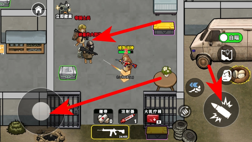 用左側操作來控制方向,點擊右側的投擲按鈕,借助道具對目標敵人發(fā)起攻擊。