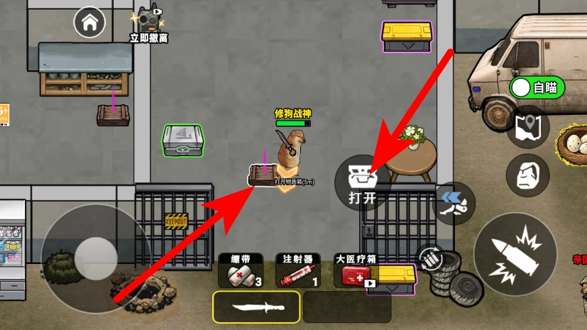 在室內靠近貨架之類物品的地方,點擊開啟就能獲取物資道具。