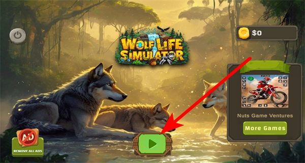 在游戲啟動(dòng)界面,點(diǎn)擊那個(gè)綠色的播放按鈕,就能進(jìn)入模擬狼族生活的場(chǎng)景,開(kāi)啟狼的生存冒險(xiǎn)之旅。