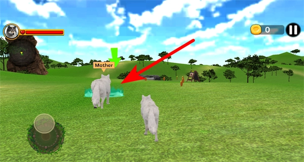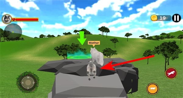 可以通過(guò)左側(cè)的WASD按鍵來(lái)控制狼的移動(dòng),朝著標(biāo)有“Mother”的母狼方向靠近,以此完成跟隨互動(dòng)的操作。