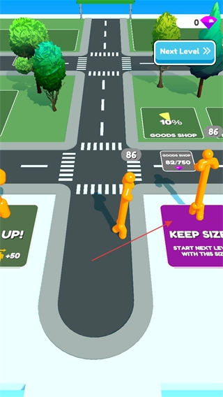 讓角色穿過標(biāo)有數(shù)字的圓環(huán),收集圓環(huán)上的數(shù)值來增大自身規(guī)模,就像圖里的綠色小人穿過圓環(huán)后體型變大了一樣。