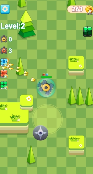 坦克生存賽是一款以快節(jié)奏、輕量級(jí)對(duì)戰(zhàn)為核心的休閑坦克射擊游戲。游戲采用俯視角設(shè)計(jì),玩家通過虛擬搖桿操控坦克移動(dòng),點(diǎn)擊按鍵即可完成瞄準(zhǔn)與射擊操作。每局比賽時(shí)長(zhǎng)緊湊,玩家需在躲避來自各方炮彈的同時(shí),迅速收集散落的護(hù)甲、彈藥和技能道具,并通過摧毀其他坦克來提升自身實(shí)力。