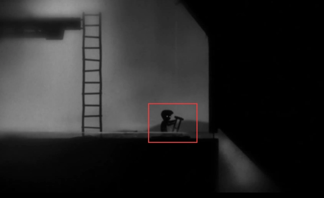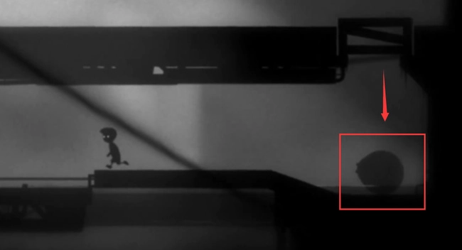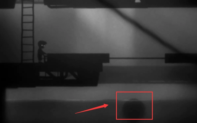 十三、將球推到圖中箭頭指示的位置后,角色向左移動并登上扶梯。
