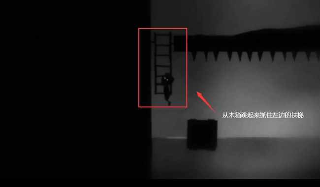 七、當木箱漂到扶梯附近時,跳起抓住扶梯往上攀爬。(此時要留意角度問題,游戲里存在浮力影響,站在木箱邊緣會直接落入水中,因此得選好站立的位置)