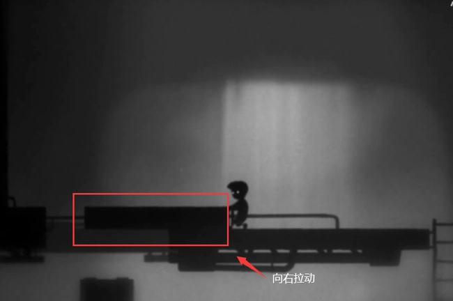四、爬到上方平臺后,向右拉動下圖紅框所圈的長方形。