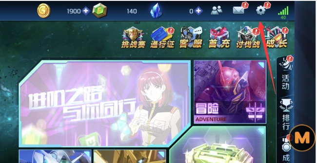 首先進(jìn)入游戲敢達(dá)爭鋒對(duì)決 點(diǎn)擊設(shè)置