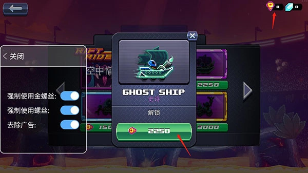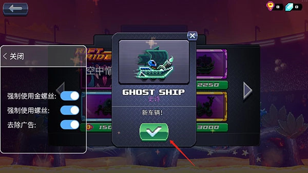 當(dāng)你想購(gòu)買高級(jí)賽車卻缺少金螺絲時(shí),只要開啟,即便金螺絲數(shù)量不足也能完成購(gòu)買。