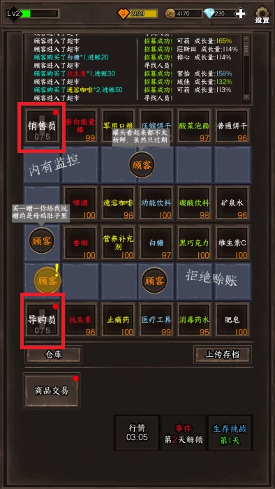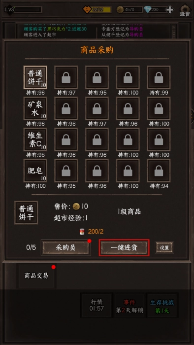 :共同應(yīng)對(duì)世界末日危機(jī),要根據(jù)客戶需求嚴(yán)格修改采購(gòu)商品的類型,設(shè)定合理的價(jià)格,以獲得最大的利潤(rùn)。我在末世開(kāi)超市新秩序玩法說(shuō)明